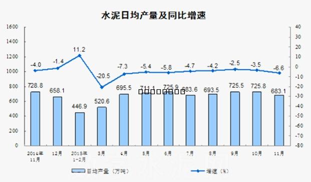 快讯:1~11月份累计水泥产量同比下降5.1% |