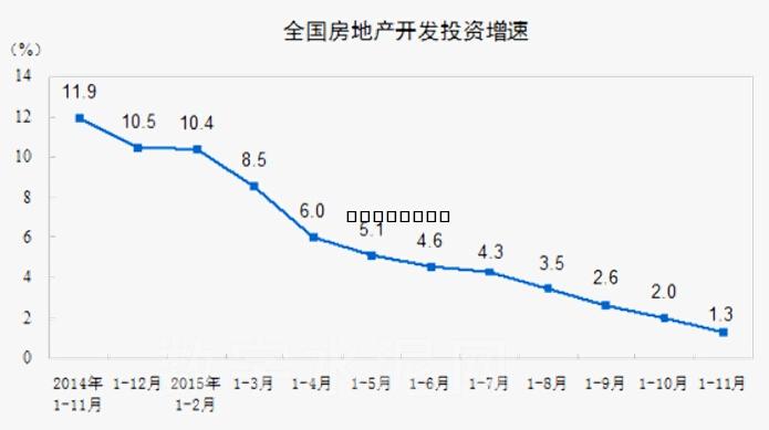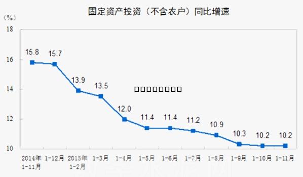 2015年1-11月份,全国固定资产投资(不含农户)497,182亿元,同比名义增长10.2%,增速与1-10月份持平。从环比速度看,11月份固定资产投资(不含农户)增长0.73%。