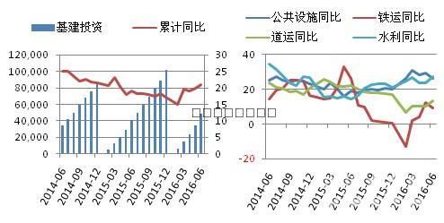 2016年上半年,全国水泥行业产销量和价格似乎都已经走出了去年双双下跌的困境,尤其房地产及基建投资增速显示出明显回升,然而,从上半年企业停窑情况、单月水泥、熟料产量的走势及上半年各月水泥价格变化情况来看,水泥行业全年走势仍然存在较大不确定性。行业利润继续保持同比下降的走势,截止到7月底有17家上市水泥企业公布业绩预告(或业绩快报),其中只有金圆股份和金隅(268.75元/吨,0%)股份业绩预增、四川双马扭亏为盈,其余14家均为亏损或净利润预减。上半年水泥行业似乎出现谷底回升的局面,然而从行业效益来看却仍处于筑底阶段,6月份全国水泥价格出现顶部回落走势,7月份这种下降走势仍在延续,似乎预示着上半年行业回暖成果即将在下半年化为泡影。 一、房地产与基建投资增速明显回升,带动水泥需求明显回升 上半年房地产与基建投资成为托底全国固定资产投资致使其未能快速下滑的主要力量,也因此带动了水泥需求明显回升。1-6月份,全国基建投资(不含电力)同比增长20.9%,增速较去年同期上涨1.8个百分点;全国房地产开发投资同比增长6.1%,增速较去年同期上涨1.5个百分点;房屋施工面积与新开工面积较去年同期均有好转,尤其是新开工面积,同比增长14.9%,去年上半年则是同比下降15.8%。 图1:全国基础设施建设投资及各行业投资增速情况(亿元,%)